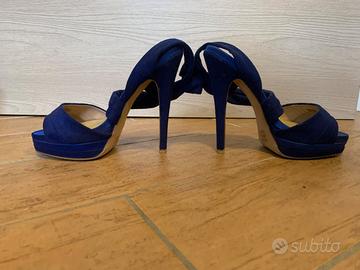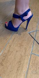 Vendo sandali con tacco Marina Grey velluto blu, usati pochissimo ottime condizioni Taglia 37