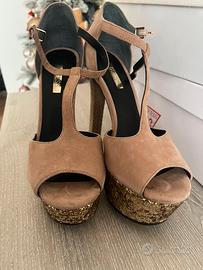Vendo sandali guess colore beige e rifiniture glitter oro, praticamenre nuove n 36.