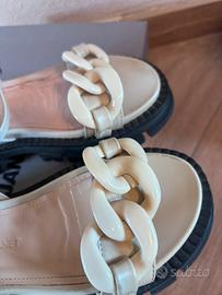 Saldalo color panna in pelle e suola nera in gomma molto comodo. Janet & Janet usato ma in buono stato