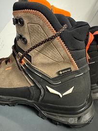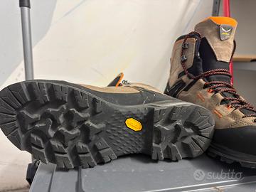 Vendo questi fantastici scarponcini da alpinismo/trekking/hiking acquistati nemmeno 2 mesi fa e usati SOLO UNA VOLTA per un breve trekking. Si presentano in perfetto stato come si può vedere dalle foto in quanto usate 1 sola volta dalla data di acquisto. Complete di scatola, solette con sistema MFF in dotazione e ovviamente scontrino d’acquisto. Disponibile per altre foto/info. No offerte assurde e no affaristi. Di seguito specifiche tecniche: Plantare MFF+ Fodera GORE-TEX® Performance Comfort Suola Vibram® WTC 2 Materiale superiore * Pelle scamosciata 1,6 mm * Bordone completo in gomma 360° * Sistema 3F con cavi in acciaio