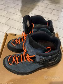 Vendo scarponi trekkingmarca Salewa modello Trainer Mid Gtx colore blu, misura 44, usati ma in buono stato.