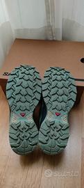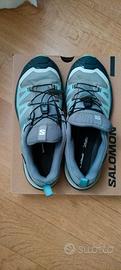 Scarpe da trekking marca Salomon da donna. Colore grigio/azzurro Totalmente impermeabili grazie alla membrana in Goretex. Numero 40 2/3. Usate poco, in ottimo stato.