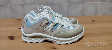 Vendo splendide Salomon XT - QUEST 2 originali, mai indossate e ancora nella loro scatola originale. Questo modello combina l'estetica delle scarpe da trail dei primi anni 2000 con le tecnologie moderne di Salomon (suola Contagrip e telaio 4 D Advanced Chassis), rendendole perfette sia per l'outdoor che per l'uso quotidiano.