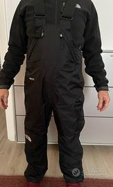 Le cuciture termonastrate sono oerfette e Completamente sigillate. Perfetta per alpinismo, cascate di ghiaccio e snow board. 2 tasche nel petto, cerniere YKK IN PERFETTE CONDIZIONI. Apertura totale lungo le gambe per indossarle facilmente in un secondo tempo. Ghette interne ed apertura posteriore nel sedere senza dover togliere il pantalone in caso di necessita'. Taglia M che veste anche L. Vedere nelle foto in cui la indosso con vita chiusa al massimo con i suoi strep: peso 74 kg e sono alto 1,75 mt