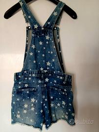 salopette corta jeans blu con stelle bianche taglia 12/13 anni 158 cm