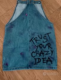 vestito salopette in jeans, misura 42, kiabi, decorazioni artistiche fatte a mano da me