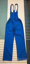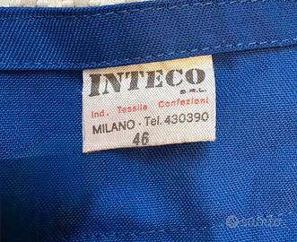 Splendida e rarissima salopette da lavoro vintage originale Olio Fiat, un pezzo di storia dell'automobilismo italiano. Prodotta a Milano dalla storica azienda Inteco S.r.l., è un capo autentico non riprodotto. Perfetta per collezionisti, amatori di auto d'epoca o per chi segue il trend "workwear/streetwear" vintage. • Dettagli iconici: Logo "Olio Fiat" giallo su fondo blu stampato sulla tasca pettorale. • Caratteristiche: • Tasca sul petto con chiusura a zip metallica. • Bretelle regolabili con fibbie in metallo. • Due tasche frontali a vita e una tasca posteriore con bottone. • Taglio a gamba dritta/leggermente ampia. • Colore: Blu elettrico tipico delle tute meccanico dell'epoca. • Composizione: 65% Poliestere, 35% Cotone (tessuto resistente e di alta qualità). • Taglia: 46 (Etichetta originale presente). • Condizioni: Ottime condizioni vintage. Il tessuto è ancora robusto e i colori sono vividi.