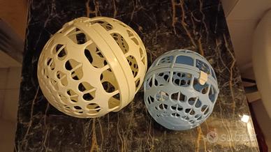 due palle plastica per salvare slip e reggiseni durante il lavaggio in lavatrice.