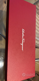 Raffinato portacravatte da viaggio Salvatore Ferragamo in pelle nera con iconico motivo Gancini.