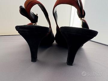 Bellissime! Pari al nuovo. Tenute con cura è sempre con le forme. Camoscio nero con rifinitura in beige. Tacco 5 cm. Comodissime