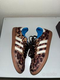 Adidas Samba leopardate taglia 39, comprate qui nuove con etichetta e usate letteralmente una sola volta. Sono in condizioni perfette, senza difetti, segni o usura visibile. Segnalo però che vestono piccole: pur essendo una 39, sono più adatte a un 37-38. Sull’etichetta interna è indicata anche la misura in centimetri della soletta, quindi consiglio di controllarla bene prima dell’acquisto, non come ho fatto io. Le vendo a malincuore molto meno rispetto a quanto le ho pagate.