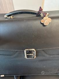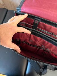 Borsa da lavoro in pelle e tessuto, ideale per documenti e effetti personali.