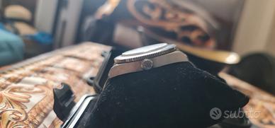 Come da titolo vendo,San Martin BB58 Gmt. Cassa in acciaio da 39mm,quadrante nero,datario ad ore 15,movimento Automatico Seiko Calibro Nh34,indici e lancette BGW9 blue light,vetro zaffiro bombato con rivestimento antiriflesso,lunetta bidirezionale blu scuro e rosso,corona ad ore 15,fondello a vite,resistente all'acqua 100Mt,bracciale in acciaio completo. Orologio fullset,perfetto nel funzionamento e nell'estetica,da segnalare solamente leggeri segni sulla clasp,che se volete potete far lucidare. Non accetto resi o reclami in quanto l'orologio è in ottime condizioni. Spedizione tramite tutto e subito,oppure gestita da me.