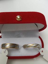 COPPIA FEDI NUZIALI DIAGONAL DESIGN PER UN OCCASIONE SPECIALE O PER UN REGALO INDIMENTICABILE SPESSORE DA 2mm o DA 5 mm IN ACCIAIO INOSSIDABILE DOPPIO COLORE PLACCATE ORO e ARGENTO CON SCATOLINA PORTA FEDI NUOVE CON CARTELLINO MISURE DISPONIBILI