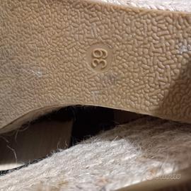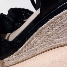Sandalo zeppato usato poco e tenuto bene,con fascia anteriore in tessuto lavorato color nero n.39