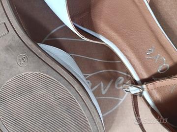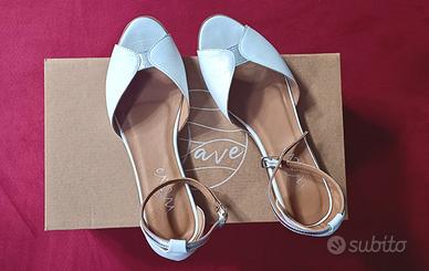 Sandaletti da donna Wave, taglia 37, colore nappa bianco-laminato argento. Acquistati per la cerimonia della Comunione, indossate due/tre volte. Scatola e confezione originale.