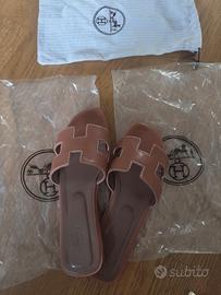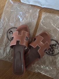 Sandali ad H marroni con cuciture marroni Richiamano il famoso brand