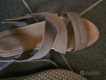 sandali originali geox numero 38, messi abbastanza e ancora,molto belli in pelle e con velcro come chiusura per me troppo bassi ormai visionabili