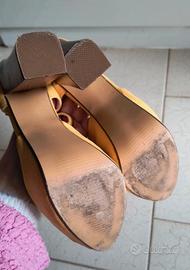 ‼️Usate una volta, conservate benissimo. Difetto sul davanti, nella parte inferiore del tacco, mostrato in foto n. 3 e 5. Non molto visibile nell'interezza del sandalo, non ne intacca la bellezza.