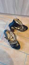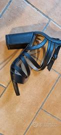 Sandali neri con intreccio, tacco 9,5cm