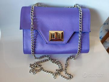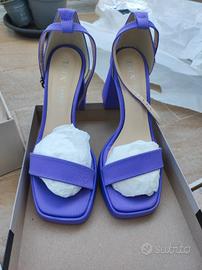 Vendo comodissimi sandali usati 1 volta ad una cerimonia + borsetta coordinata. Raso viola. Bellissimi! Valuto vendita separata scarpe/borsa. TG 38 abbondante (io indosso normalmente il 39)