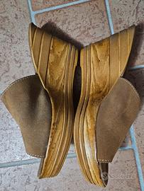 sandali aperti color cammello con zeppa, vera pelle scamosciata, numero 41. marchio Pittarello