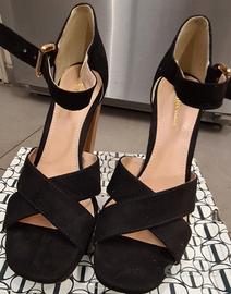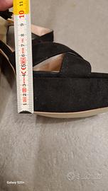 Sandali aperti davanti e chiusi al tallone da cinturino, tg 39, in materiale tessile effetto scamosciato.
