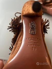 Sandali AQUAZZURA Firenze originali, in vero cuoio made in Italy. Colore cuoio/cammello con frange decorative. Modello elegante e molto comodo.