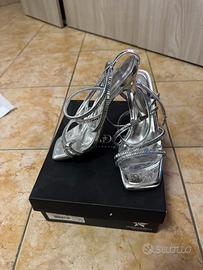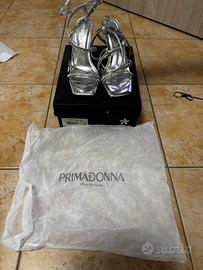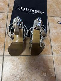 Vendo eleganti sandali donna color argento con cinturini impreziositi da strass, firmati Primadonna Collection.