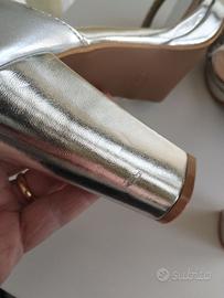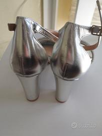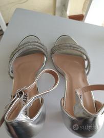 Sandali Argento con Strass Tacco Largo N. 39 Nuovi