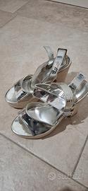Eleganti sandali con zeppa in un brillante color argento. Perfetti per aggiungere un tocco di luce al tuo outfit.