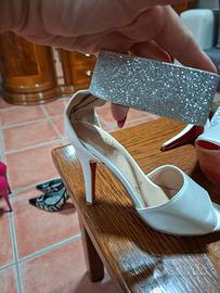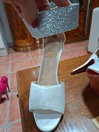 Sandali argento nuovi senza cartellino. Mai usati. Tacco 8 cm. Circonferenza della caviglia 27.