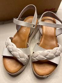 Vendo sandali da bambina marca Bata numero 32 colore bianco, in vera pelle, con elegante fascia intrecciata e cinturino regolabile alla caviglia.