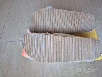sandali bassi, modello Birkenstock, colore bianco con strass color argento e bronzo. Usati 2 o 3 volte. vendo con la scatola originale. Valore € 79