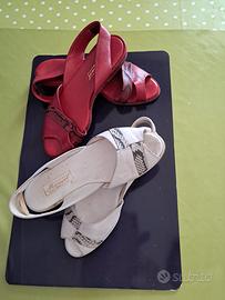 Propongo 2 paia di sandali made in Italy, uno bianco e uno rosso, con 1cm di tacco e suola in vero cuoio; comodi, numero 38 ma calzano stretto, 10 euro ciascuno e 15 se acquistati insieme. Non spedisco