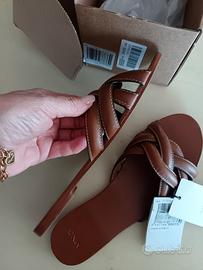 Sandali ciabattina in pelle marrone Calzano piccoli numero 37 che va bene per un 36
