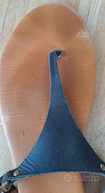 Sandali bassi , comodi e perfetti per l'estate. Sono in pelle, con dettagli in metallo color oro. - Pelle usata, ma in buone condizioni. - Adatti per un look casual. n 41