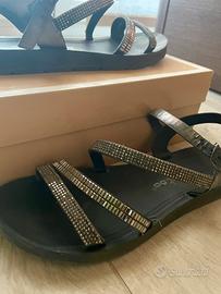 Sandali Tataitalia estivi, comodi e perfetti per l'estate. Sono un paio di sandali bassi con cinturini sottili impreziositi da strass. Le condizioni sono buone, sono un pó rovinati, come è ben vidibili dalle foto
