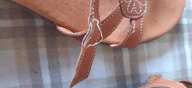 Sandali Bata da donna, in pelle marrone. Sono in buone condizioni, perfetti per la primavera-estate. Presentano una piccola scucitura in una fibbia e alcune piccole macchie in un plantare ,come evidenziato in foto .Indossate solo 1 volta ma per prova .