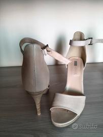 Sandali Beige in vera pelle con tacco 10, laccio alla caviglia , numero 38, mai usati.