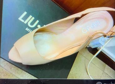 Bellissimi sandali con tacco 13 cm , taglia 36 , color beige , cinturino alla caviglia, punta aperta.
