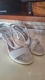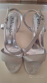 sandali argento brillantinati ,tacco 9 cm con plateau, taglia 38.