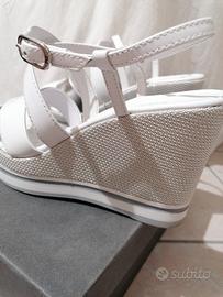 Sandali bianchi con inserti argento Nero Giardini, tacco argentato, numero 40 come nuovi