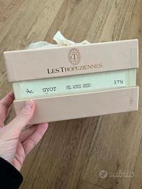 Sandali estivi vintage Les Tropeziennes in scatola originale (con certificato autenticità e gommini da tacchi di ricambio). Sono sandali di pelle, color "gesso", suola in cuoio, kitten hill, misura 37 e mezzo.