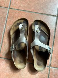 Vendo sandali infradito birkenstock numero 42 da donna, molto usati, presenti numerosi segni di utilizzo ma ancora utilizzabili.
