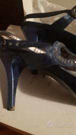 sandali blu con brillantini n.37 tacco 8 cm.1 zeppa sotto pianta
