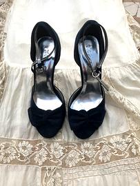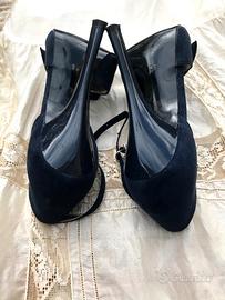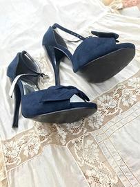Sandali in camoscio sintetico alta qualità. Colore Blu- Cinturino alla caviglia- N. 36 regolare- Tacco 11,5 plateau interno 1-1/2 cm.