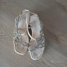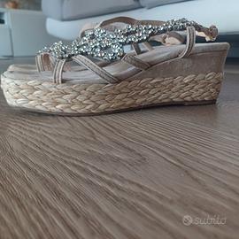 vendo sandali indossati solo 2 volte, color sabbia, molto belli ,con strass, zeppa e soletta confortevole numero 39.