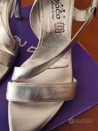 Vendo sandali in pelle e vero cuoio colore argento prodotto made in italy