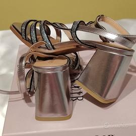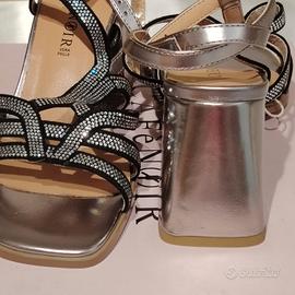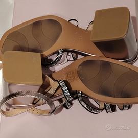 Sandali Tinta unita, Metallizzato Materiale pelle, Interno foderato, Suola in gomma Cinturino alla caviglia con fibbia Punta quadrata Tacco squadrato Cristalli Prezzo listino euro 120 Luminosi come l'estate 🌼🌻